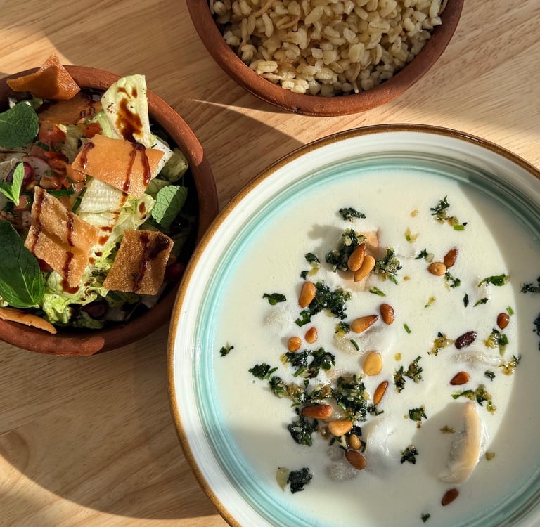Epinards, coriandre fraîche, cerneaux de noix et graines de grenade