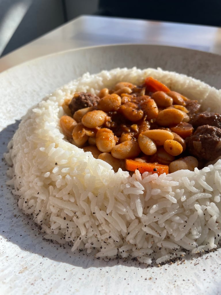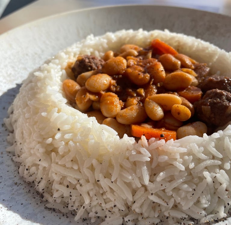 Haricots blancs, ragout d'agneau et carottes aux 7 épices